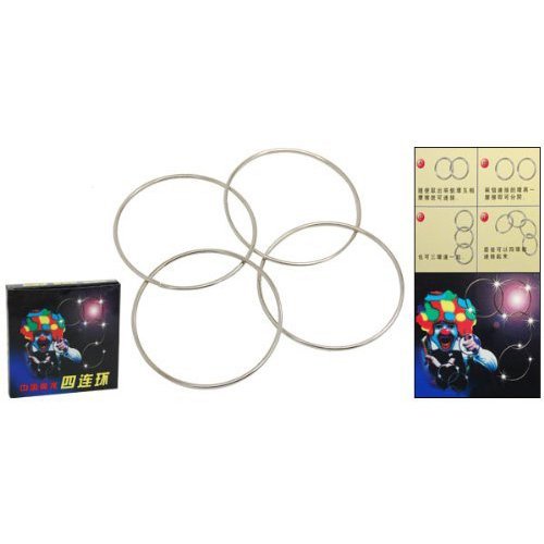 -. Binding : Toy -. Brand : Dcolor -. EAN : 0888309606204 -. Feature : This is 1 NEW "Four Connected Rings" Magic Ring Kit / Let your supernatural powers take these common rings and connect them together and make four connected rings / Each Magic Trick Kit contains four metal rings and detailed instruction sheet. / Dimension of the ring: 3.9" in diameter. / Package content: 1 x Magic Four Ring, 1 x Manual -. Label : Dcolor -. Manufacturer : Dcolor -. MPN : 006051 -. PartNumber : 006051 -. ProductGroup : Toy -. ProductTypeName : TOYS_AND_GAMES -. Publisher : Dcolor -. Studio : Dcolor -. Title : Dcolor Magic Four Connected Rings Magic Trick Kit - This is 1 NEW "Four Connected Rings" Magic Ring Kit -. UPC : 888309606204