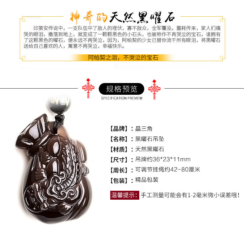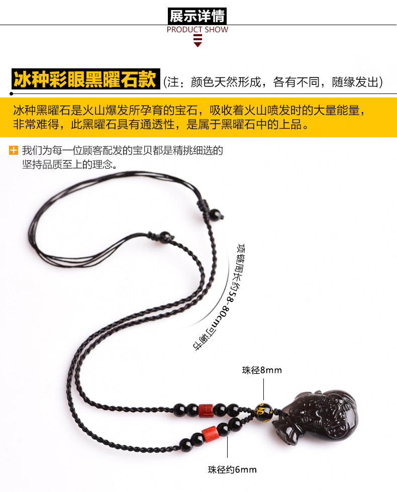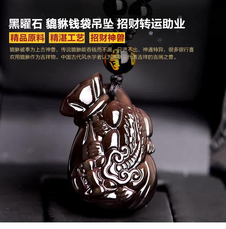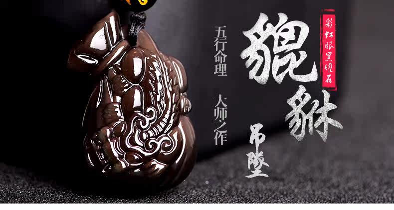开光天然冰种黑曜石貔貅吊坠 男女款项链 情侣转运水晶饰品礼物