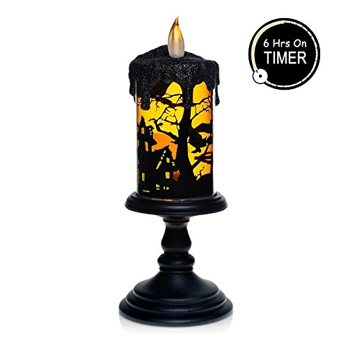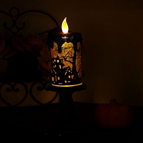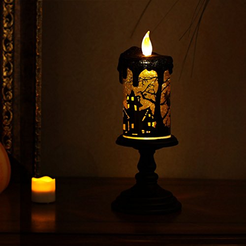 - QUALITY MATERIAL MADE -- Halloween lamp size 4 inches Diam x 10 inches Height. Package of 1. Powered by 3x AA batteries (Not Included). Made with high resin and plastic can last for a few seasons. Hassle-free set ups.