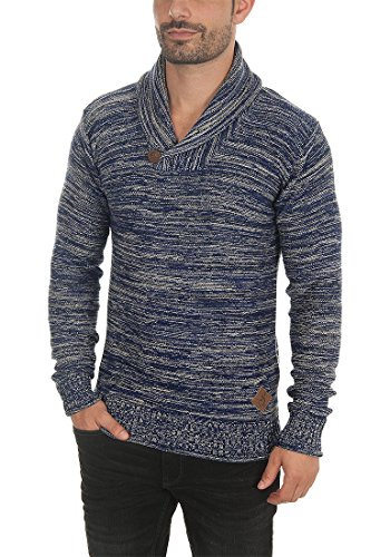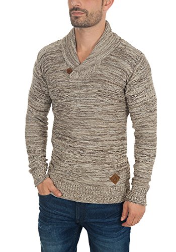 !Solid SOLID Herren Miles Shawl Pullover Strickpullover Grobstrick mit Schalkragen aus 100% Baumwolle Meliert