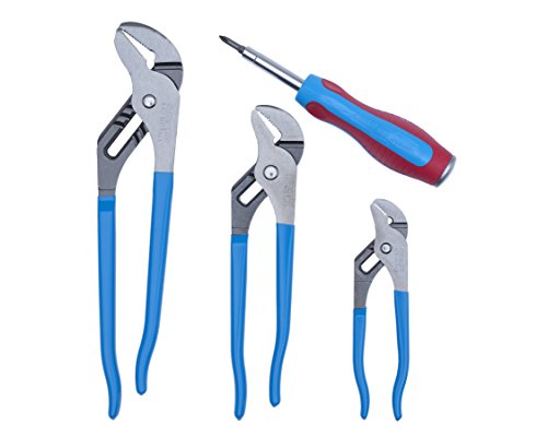 One each 426, 420, 440 Tongue and Groove Pliers. Nested in a display package. Right angle teeth that grip in all directions for maximum bite and minimum wear. Patented undercut tongue-and-groove design assures strongest, no-slip jaw action. Patented reinforcing edge minimizes stress breakage. NOTE: CHANNELLOCK BLUE dipped plastic grips are only for hand comfort and improved appearance. They are NOT recommended or warranted for dielectric properties.Feature