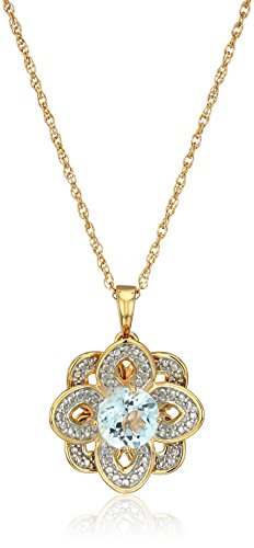 18k Yellow Gold and Rhodium Plated Sterling Silver Round Sky Blue Topaz 7mm Flower Pendant Necklace, 18"