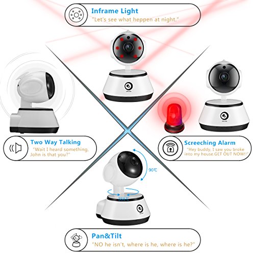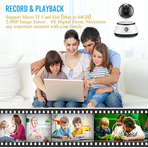 -. Feature : 1080P High Resolution: 1080P HD Video, 2.8mm 130°wide angle lens, H.264 HD Video Quality & Mass Storage, provides you a higher quality images and fluent live video. Our special 2.8mm can imaging the picture in a much larger screen, putting one in your home is enough to view a whole room, plus the PTZ control, all under your DigooEye!! / Perfect Night Vision: With IR-CUT Auto Switch Filter, this security camera will auto switch to night vision when it's dark. Night visibility 10m+, you can see the video as clear as daytime! The second generation IR LED fixed all the bugs such as can't open IR LED at night. Provide the camera a longer using life, also more lighter and stable. / Motion detection&Two Way Talking: High sensitive alarm function, 24/7 real-time message push and E-mail alert ensure the safety of your home. The Surveillance security camera built-in two-way talking with 3D Digital Noise Reduction, providing high quality auditory sense and talking effect. Never let go off any thief, never miss any important moment with you family. / Video Recording&Multi-account Support: Support Micro TF Card Slot (Max to 64GB, not include). Video automatically save in the SD card, You can playback the stored video at anytime. Multi accounts and mufti-platforms support ensure that you and your families enjoy video sharing on IOS, Android, Windows PC, Tablet at the same time. Tips: it will automatically cover the original video if the TF card is full. But you can download the video on your own cell phone to save video forever. / 1 YEAR Warranty : 1 YEAR Warranty Replacement Guarantee and Customer Satisfaction Service by OVOHome. Ask for more professional tech support : support@mydigoo.com About APP: Support both Wireless and Wired network configuration (need 2.4g). The app will recognize the cam once you plug the network cable to the Ethernet port. Search "Digoo Eye" on googly play or apple store, free for use. With reliable Wi-Fi connectivity, to view your home anytime anywhere on digooeye.