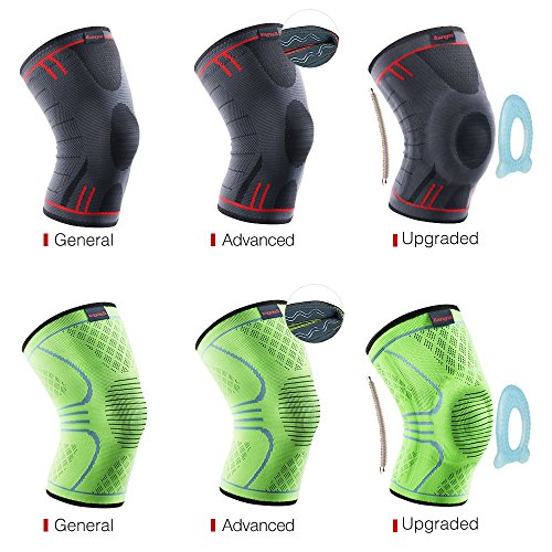 ✅FEATURE:3 Versions for Selecting(General/Advanced/Upgrade)①General version is recommended daily use,not very intense exercise use;②Advanced version contains the wavy anti-slip strips,which can prevent knee sleeve from slipping off during movement;③Upgrade Version contains silicone pad and 2 spring support strips,Incorporated with gel pad that holds the patella in proper position,stabilizes your ACL,PCL,LCL,MCL ligaments.Reinforced patella stabilizer and protection,offers more supports for knee