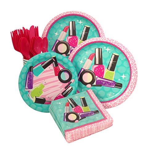 -. Title : Makeup Spa Birthday Party Supply Pack! Bundle Includes Paper Plates, Napkins, Cups & Silverware for 8 Guests