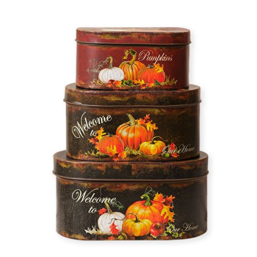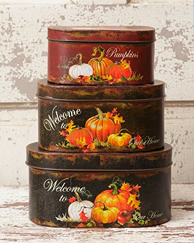 Welcome to Our Home Harvest Pumpkins Oval Nesting Tins 3 Piece Set