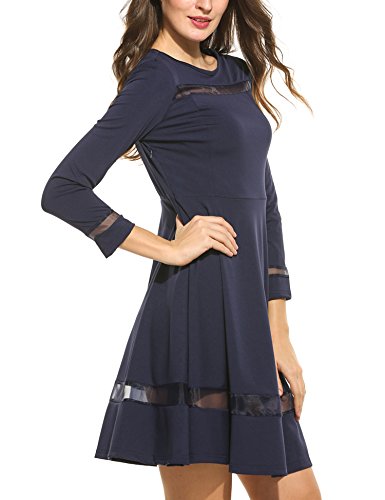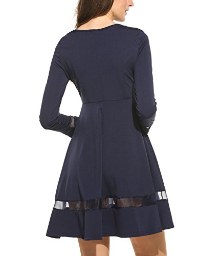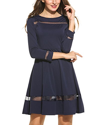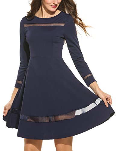 Title : ACEVOG Women's Elegent Long Sleeve Sheer Mesh Panel Flare Insert A-line Party Skater Dress