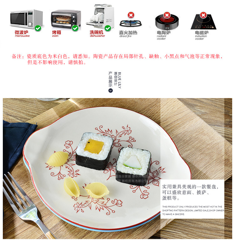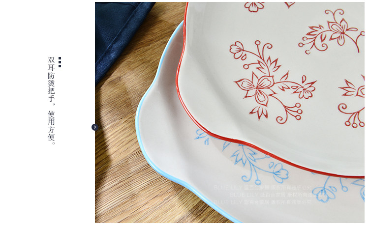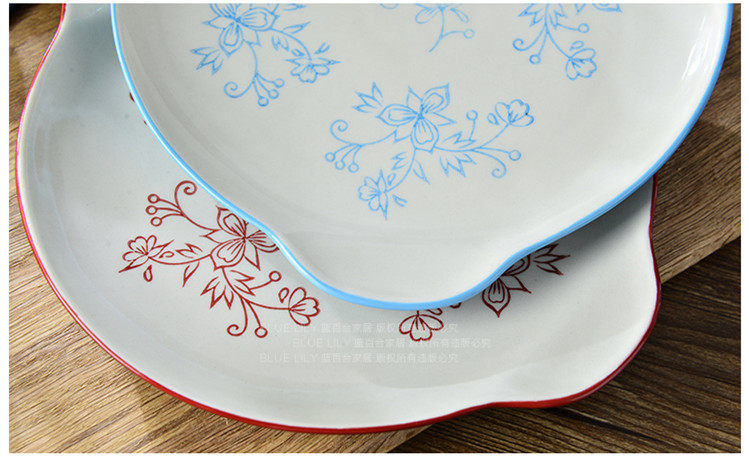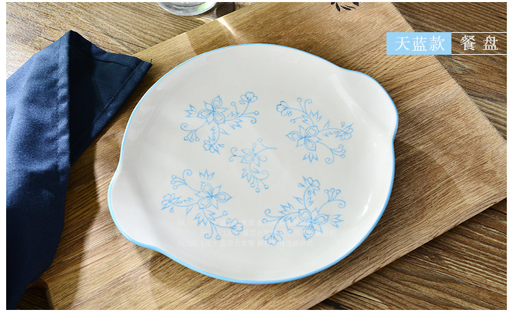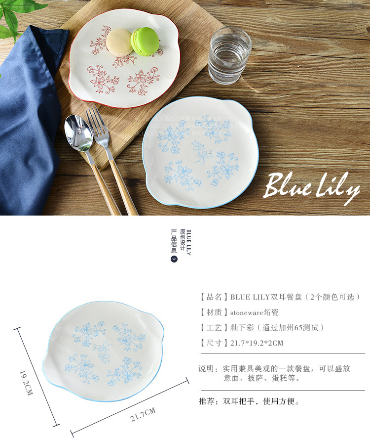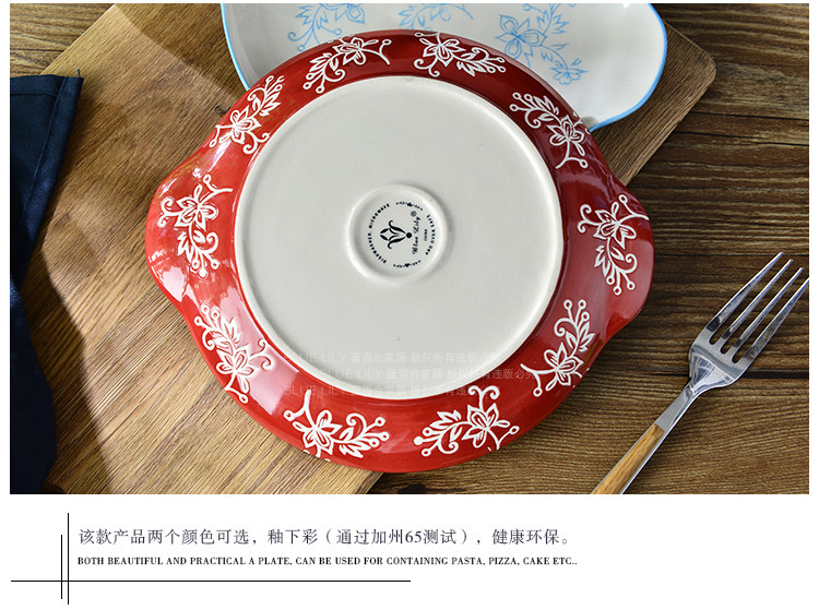 酒红天蓝系列 纯手工釉下彩 可爱 8寸双耳圆盘 2色选
