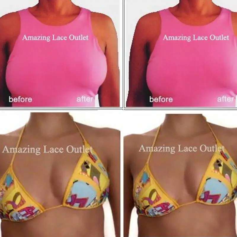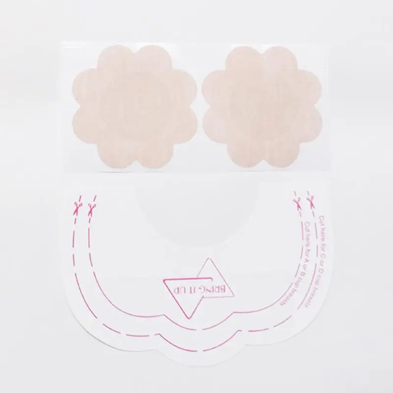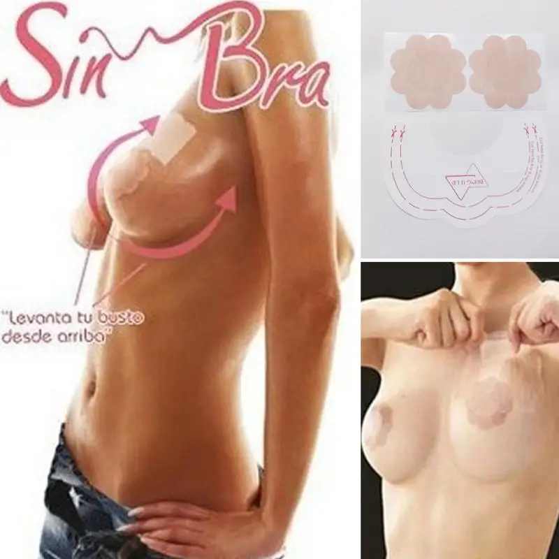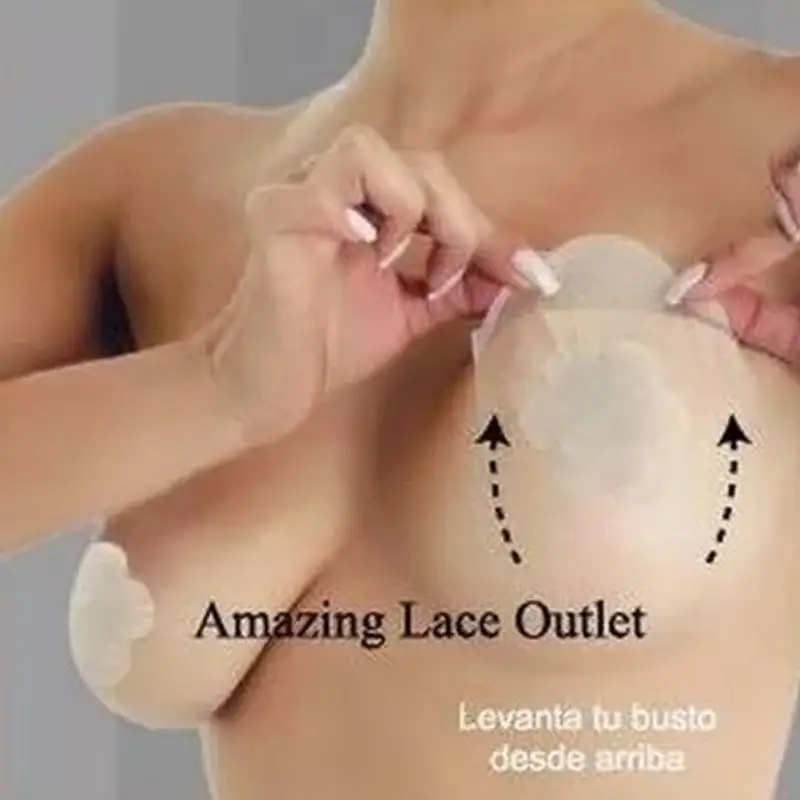 Features:*Transparent, waterproof, Hypo-allergenic*Fashion, sexy, elegant, comfortable.*Lifts breasts without a Bra*No surgery needed*Boosts confidence, enhances cleavage.*1 pair can be used one time.Specifications:Color: SkinSize: StraplessBra: 12cmx8cmQuantity: 6u0026nbsp; PairsNipple Cover: diameter 6cm (Approx.)Material: Hypoallergenic Adhesive + Silk ClothNet Weight: 29gFits cups A, B, C and DPackage: 6u0026nbsp; Pairs Chest Paste