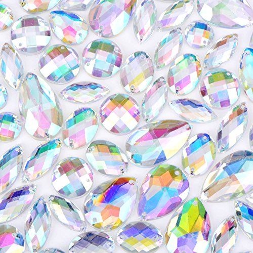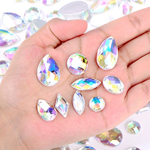 Hicarer 108 Pieces AB Clear Gems Acrylic Sew On Rhinestones Faceted Flatback Crystal Buttons for Clothing Dress Decorations