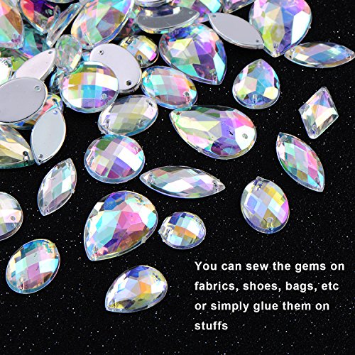 - Easy to apply: there are holes on both ends of the gems, you can sew the gems on fabrics, garments, dresses, shoes, bags, handicrafts, art projects, headpieces, etc., or you can simply glue them on stuffs