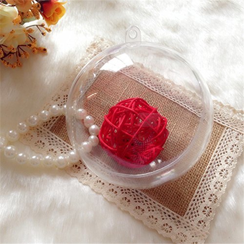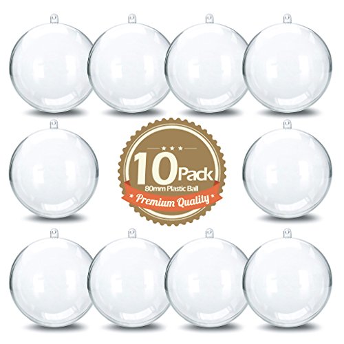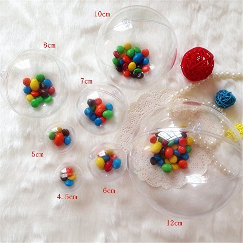Studio : EKIND Publisher : EKIND Binding : Kitchen Product Description Clear Plastic Ball Ornament 80mm DIY-ers and craft enthusiasts everywhere love our Clear Plastic Ball Ornaments because they're 100% shatter-proof, sturdy and easily fillable! Not only are these clear ornaments ideal for decorating the Christmas tree, they can be used for just about any occasion. Fill them with small trinkets, ribbon, paper, glitter or confetti to create personalized gifts, Christmas tree ornaments or decorative pieces. They measure 60mm in diameter, so they're the ideal size for any kind of craft project. Each pack includes 12 plastic ball ornaments waiting to be filled and decorated. What are you waiting for? Click 'Add to Cart' to order your own fillable ornaments today! Specification Material: polystyrene Quallity: 10 pcs ornament ball