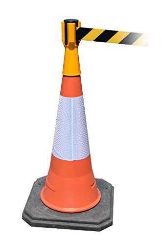 Tensabarrier TC114-35-STD-NO-D4X-C Tensacone Yellow Topper, No Custom Chevron Black/Yellow Webbing Standard Belt End, Maximum 7.5'