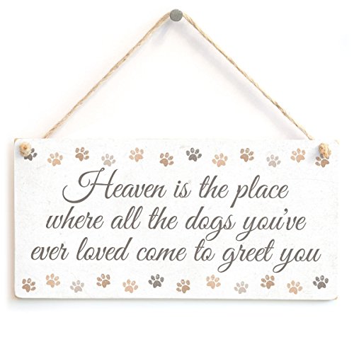 Heaven is the place where all the dogs you've ever loved come to greet you - Paw Print Handmade Dog Lover Gift Sign Wooden Hanging Sign 8" X 12"