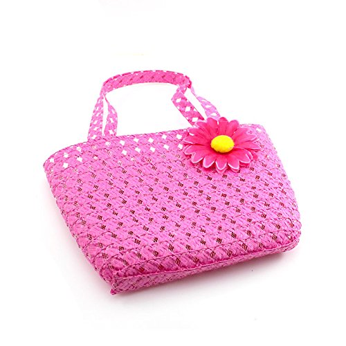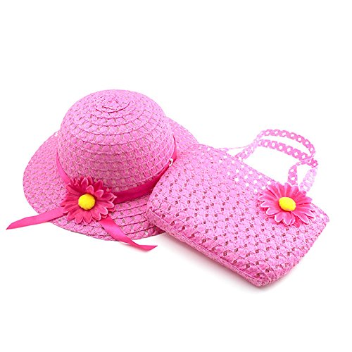 HuaYang Fresh Pastoral Style Baby Girl Summer Sun Protection Straw Hat Flower Cap Handbag(Hot Pink)