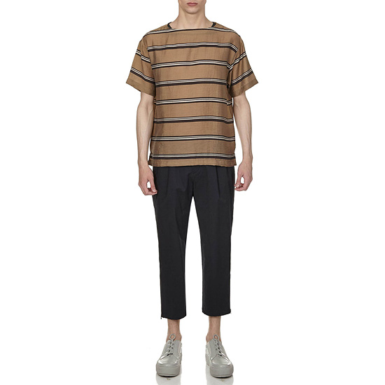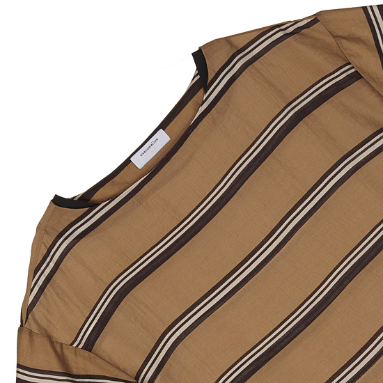 - 보트넥 디자인에 투톤 스트라이프 패턴으로 캐주얼한 분위기 연출.