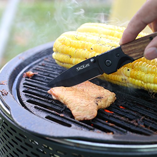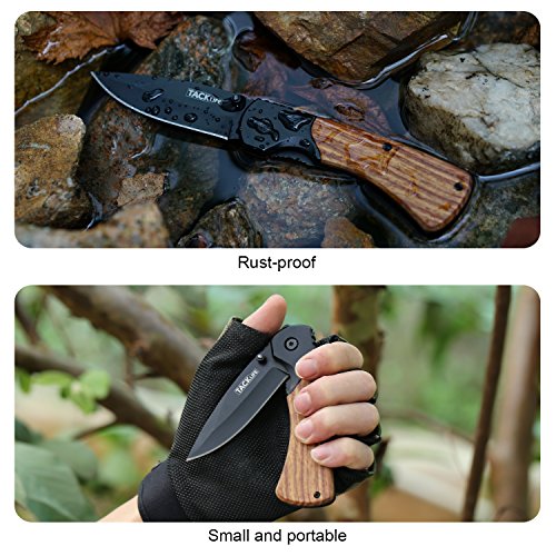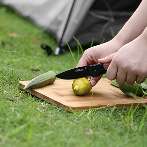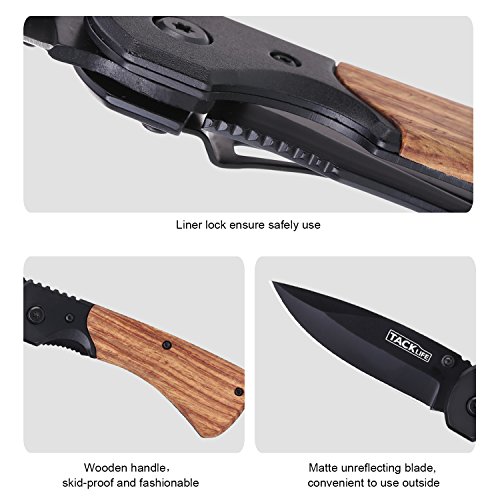 Tacklife FK04 Professional Pocket Folding Knife with Wood Handle, Sharp Steel Blade and Liner Lock, 4.4-Inch Closed
