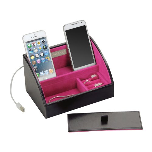 STACKERS: Charging Valet: Fits two smart phones or one tablet up to 16.95cm in width, with an easy access flap for your cables and three port positions to choose from.