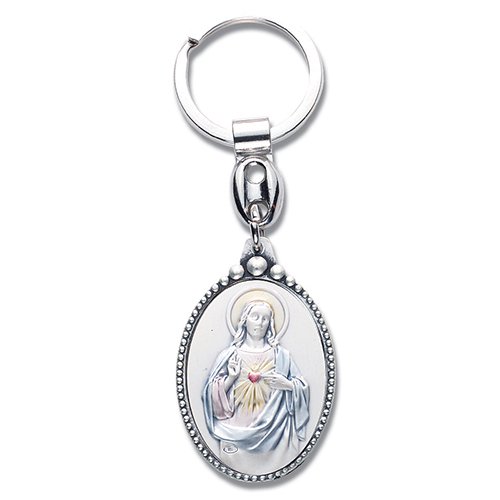 -. Title : Sacred Heart of Jesus Christ Inset with Silver Plate Base Medal 3 1/2 L Keychain