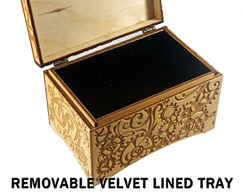 Title : Velvet Keepsake Personalizable Music Box, "Can't Help Falling In Love", Laser Engraved Birch Wood (Steampunk Standard Black)