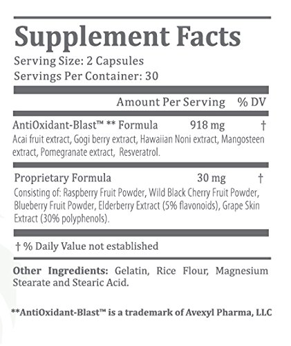 Natural Antioxidant Formula w/ Resveratrol, Acai, Gogi Berry, Mangosteen, Hawaiian Noni & Pomegrante. - Helps Boost Immune system & promotes...
