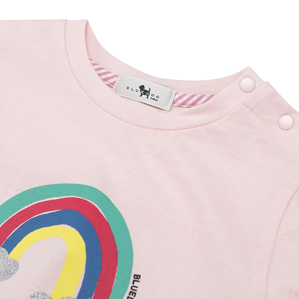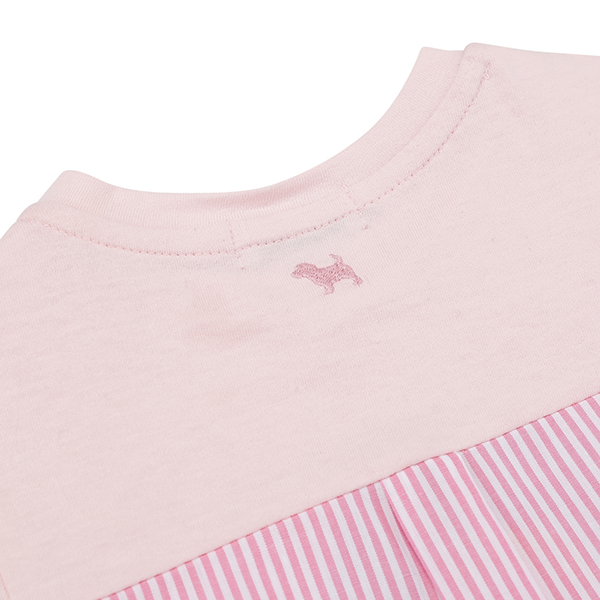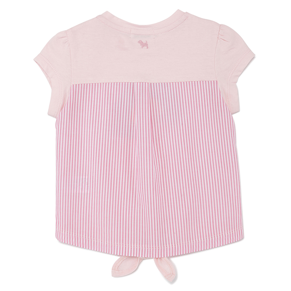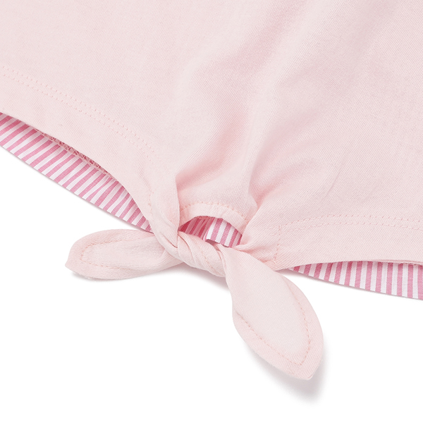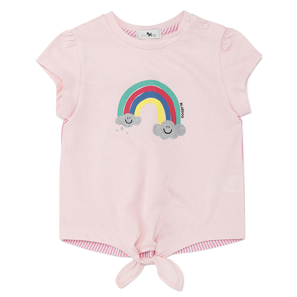 허리에 리본을 묶어서 큐트한 룩을 연출 할 수 있는 여아 티셔츠입니다.