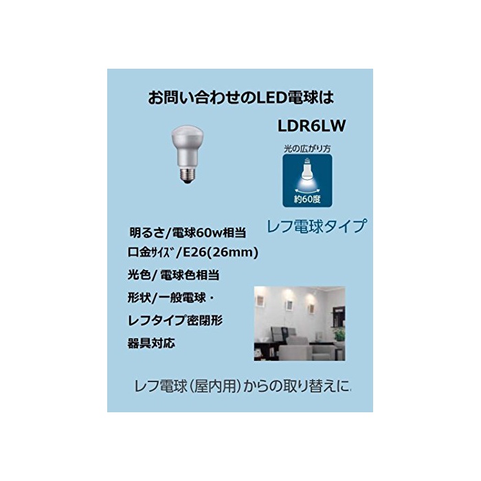 원본상품명: パナソニック LED電球 口金直26mm 電球60W相 電球色相(6.4W) 一般電球レフタイプ 密閉形器具 LDR6LW