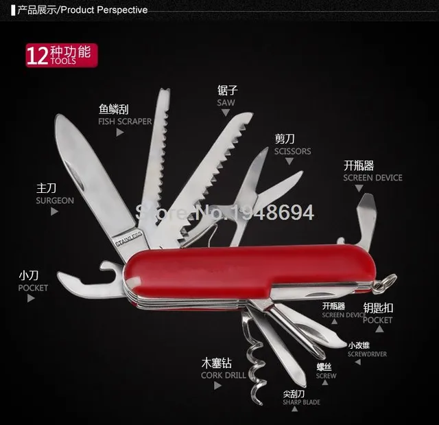 스위스 접는 칼 스테인레스 스틸 멀티 도구 육군 나이프 포켓 사냥 캠핑 야외 생존 칼