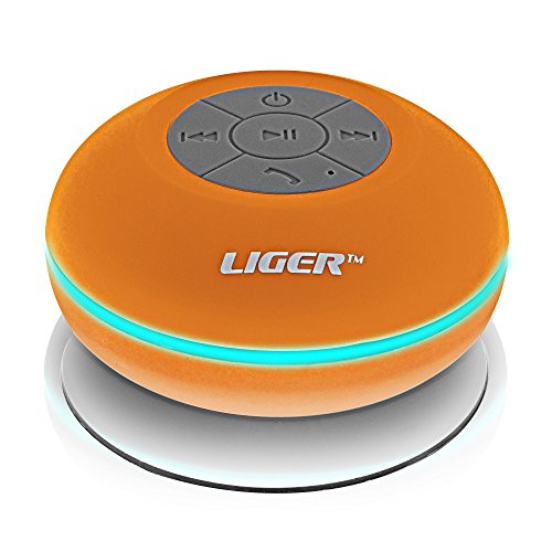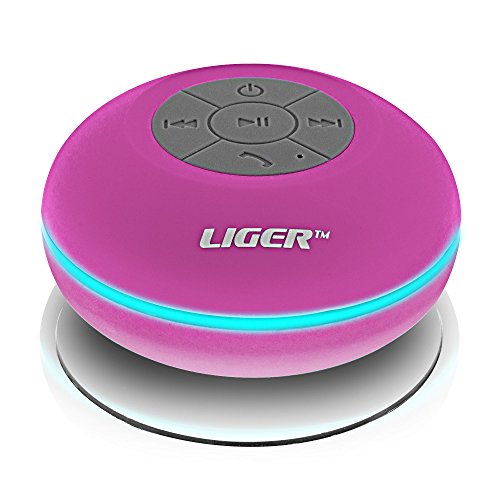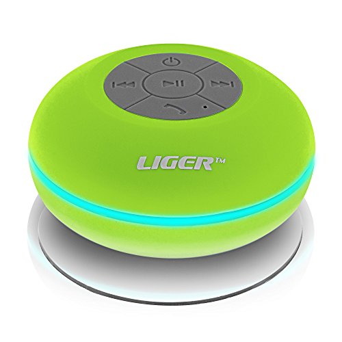 Waterproof Shower Speaker, Liger Waterproof Wireless Bluetooth Shower Speaker & Hands-free Speakerphone - Exclusive LED Light Effects, Micro USB Charger And Powerful Crystal Clear Premium Sound Compatible With All Bluetooth Devices, Apple iPhone 6/6