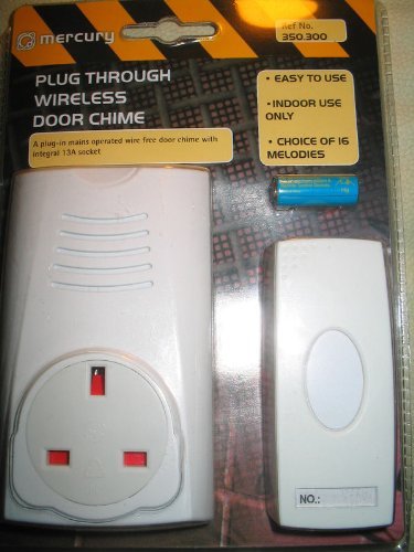 -. Feature : Mercury plug through wireless door chime / Choice of 16 melodies , easy to install / Digital coded signal to prevent outside interference / Indoor use only , 80m range / Push's battery(included in the package) , receiver uses power supply
