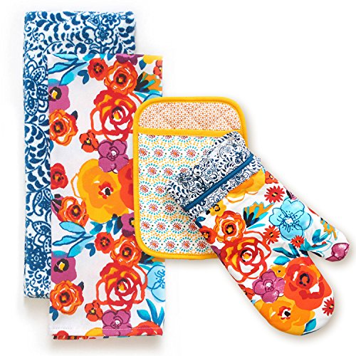 - Set includes: 2 coordinating Kitchen Towels from the Flea Market Collection, 1 oven mitt & 1 pot holder.
