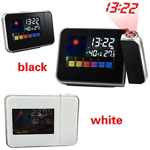 Studio : Lily's gift Publisher : Lily's gift Binding : Kitchen Product Description Specifications: Material: Plastic Color: Black /White Size:15 x 11 x 2.5 cm Projection distance:1~5m Projection angle: 180 degree Temperature range: 0~50 ? / 32~122 ? Humidity range: 20%RH~99%RH Calendar: 2001 - 2099 year Battery: 2 x AAA batteries (not included)
