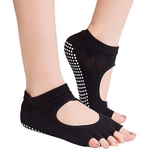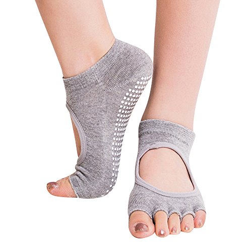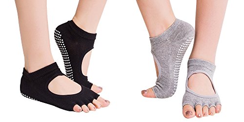 QBSM 2 Women Half Toe Grip Non Slip Skid Yoga Pilates Socks with Grip for Ballet