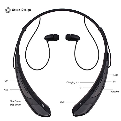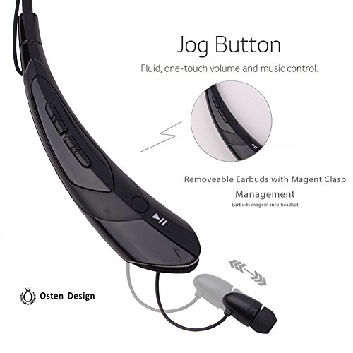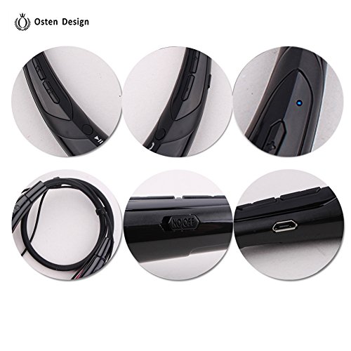 Feature : HIGH QUALITY CRYSTAL CLEAR SOUND --- Brand new and high quality, support Bluetooth v4.0, hands-free calling / HIGH CAPACITY RECHARGEABLE BATTERY --- Long playtime come with world famous brands csr4.0 Bluetooth stereo chips extended battery life-talk/standby/music play time: up to 15/400/10hours / COMFORTABLE, FLEXIBLE AND LIGHTWEIGHT --- Featuring an unique neck-strap and ultra light weight designed specially for easy carrying for all day comfort. The flexible, bendable, neckband style ensures a 100% comfortable fit / CONNECT 2 DEVICES AT THE SAME TIME --- Osten Design 760 wireless neckband headsets are made of ultra-light shape memory alloy. Easy to handle ear set with magnetic properties, you don't miss your calls when you have 2 cell phones / COMPATIBLE WITH MOST CELLPHONE --- Compatible with Iphone 6 6plus 5s 5c 4s 4, Ipad 2 3 4 New Ipad, Ipod, Android, Samsung Galaxy, Smart Phones and devices with Bluetooth capabilities