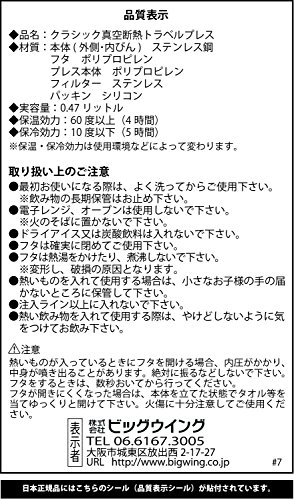 Vacuum insulation keeps drinks hot 4 hours, cold 5 hours or iced 20 hours