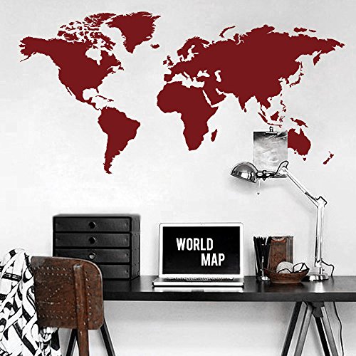 MairGwall World Map Wall Decal The Whole World Wall Vinyl Art Sticker for Home and Office (Black, 50"H x 100"W )