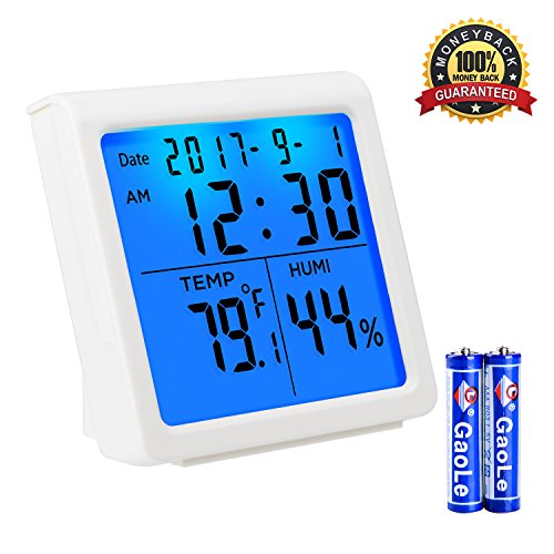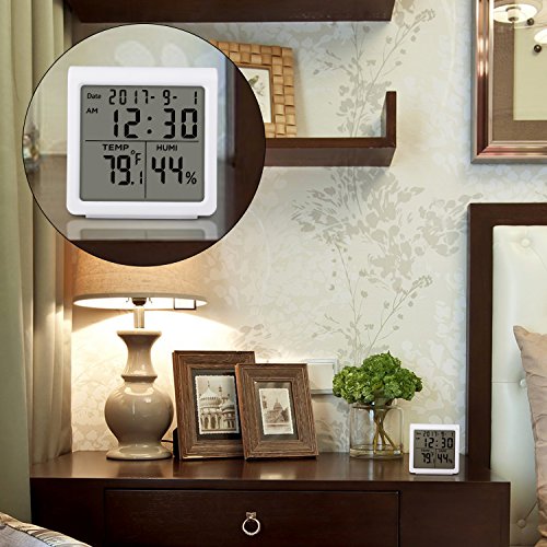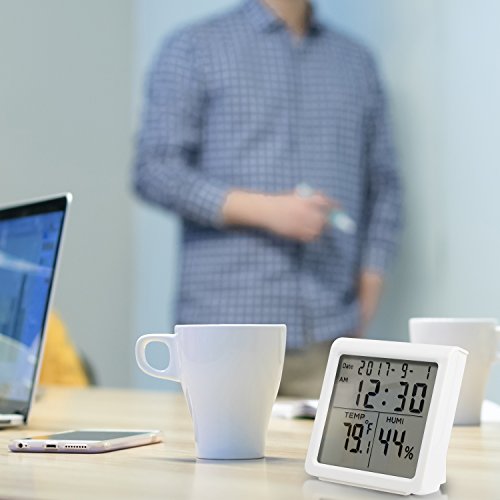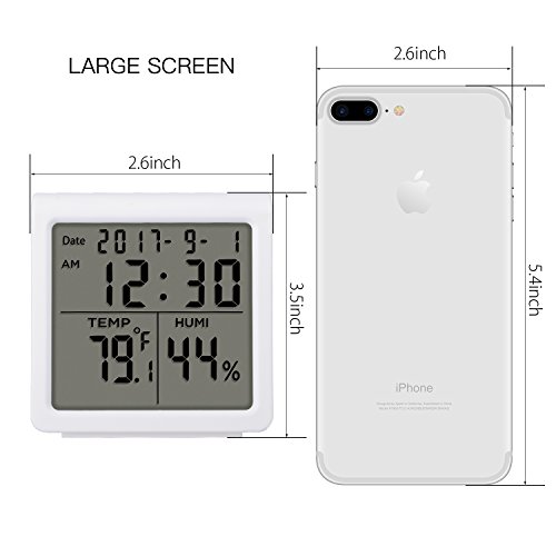 Studio : Neeuq Publisher : Neeuq Binding : Kitchen Product Description This Indoor Thermometer Digital Hygrometer Humidity can accurately monitor the environment temperature and humidity. The digital thermometer and humidity gauge combination offers pro-level accuracy,measures conditions every 30 seconds and features an easy to read digital dispaly. You can also switch the way of display about temperature. Press the "°C/°F" button, and you will easily change the display reading. The instrument measures temperature over the range of -20℃ to 70℃ and humidity over the range of 10% to 95% RH. Temperatuer error range: ±1℃, Humidity error range: ±5%RH. The unit is housed in an ABS case and lightweight, convenient to take it home and out. Product Features: → Temperature, Humidity display (5 seconds to update the value) → °C /°F can switch display → The Memory function of Maximum and Minimum → Temperature and Humidity in 24 hours → 12/24 Hour Clock → Daily Alarm Function → Date Display Function → LED Backlight Function Specifications: → Temperature Measurement Range : -20 °C ~ 70 °C → Temperature Measurement Accuracy: ± 1°C(1.8 °F) → Temperature Resolution: 0.1 °C(0.2) → Humidity Measurement Range: 10% RH~95% RH → Humidity Measurement Accuracy: ± 5% RH → Humidity Resolution: 1% → Dimensions: 86*90*43mm → Use the Battery: 2*AAA-1.5V Package Included: → 1 x Indoor Digital Hygrometer Humidity Monitor → 2 x AAA Batteries → 1 x User Manual Warranty Policy: → 24-Month Money Back Guarantee → 7/24 Online Customer Service → Lifetime Support Guarantee 0