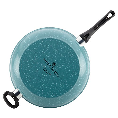 Skillet cooking gets a boost of convenience and capacity with the dishwasher-safe Paula Deen(r) River bend Aluminum Nonstick 12-1/2-Inch Deep Skillet with Helper Handle. This two-handled frying pan from Paula Deen(r) is ideal for making Southern-style weekend breakfasts, perfect for lunchtime fricassees and large enough for a weeknight skillet dinner. The dishwasher-safe aluminum construction heats quickly and evenly for better cooking control whatever the recipe. And the interior features long-lasting, top-quality nonstick, so foods release in a jiffy and cleanup is a cinch. Stain-resistant speckled porcelain exterior color inspired by classic enamelware and a charming stovetop silhouette add a warm, cozy touch to the kitchen. Take advantage of the generous size of this Paula Deen(r) deep skillet to make other dishes like sautéed vegetables, egg fried rice or a brunch frittata. Suitable for all stovetops except induction, the pan is conveniently oven safe to 350, making it easy to tackle Paula's delicious stove-to-oven recipes. Best of all, durable, stylish Paula Deen(r) River bend Cookware makes meal making easier and conveniently leaves cleanup to the dishwasher. Get into those deep, delicious flavors when cooking your best, delicious dishes with the colorful, charming dishwasher-safe Paula Deen(r) River bend Aluminum Nonstick 12-1/2-Inch Deep Skillet with Helper Handle.Feature