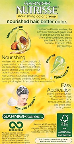 -. Binding : Health and Beauty -. Brand : Garnier -. Color : Brown -. EAN : 0603084242665 -. Feature : Rich, long-lasting color / 100% grey coverage / Nourishing avocado conditioner can be used immediately after coloring or up to 14 days later -. Label : Garnier -. Manufacturer : Garnier -. PackageQuantity : 1 -. ProductGroup : Pantry -. ProductTypeName : BEAUTY -. Publisher : Garnier -. Studio : Garnier -. Title : Garnier Nutrisse Nourishing Color Creme 60 Light Natural Brown (Acorn) -. UPC : 603084242665