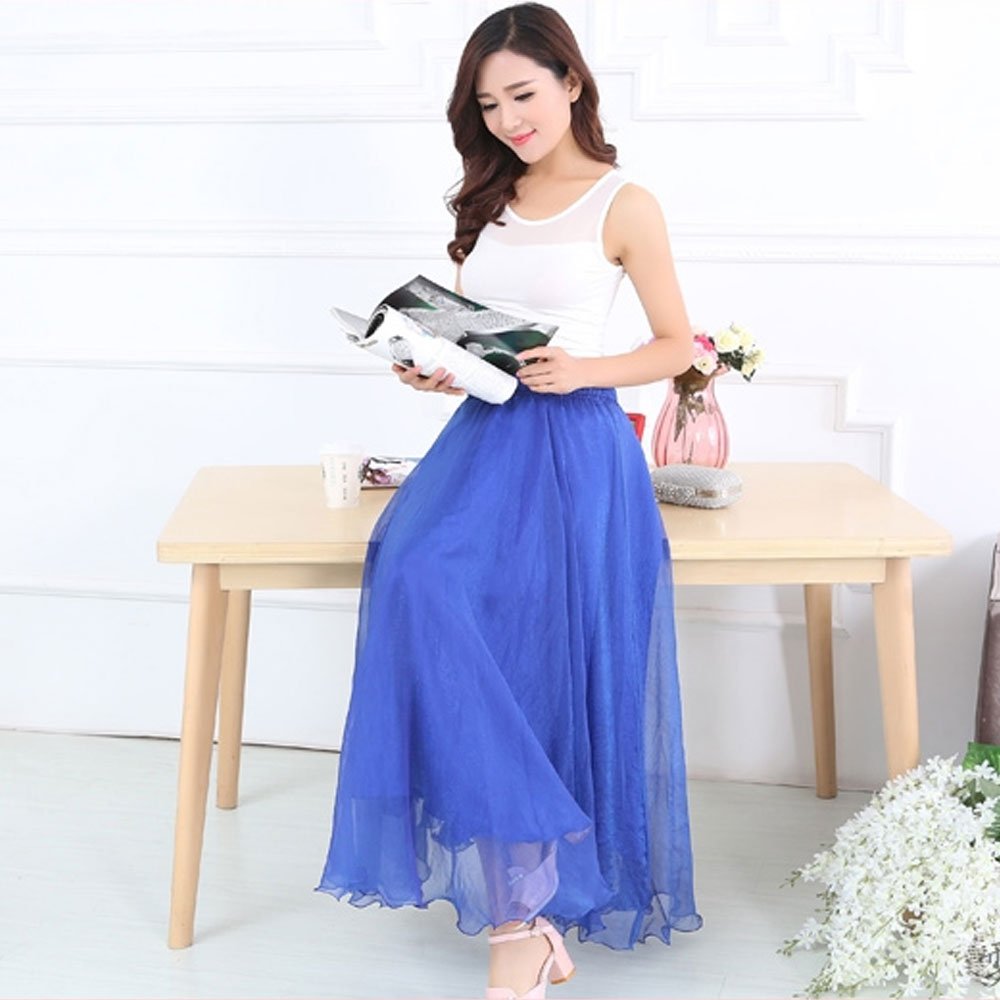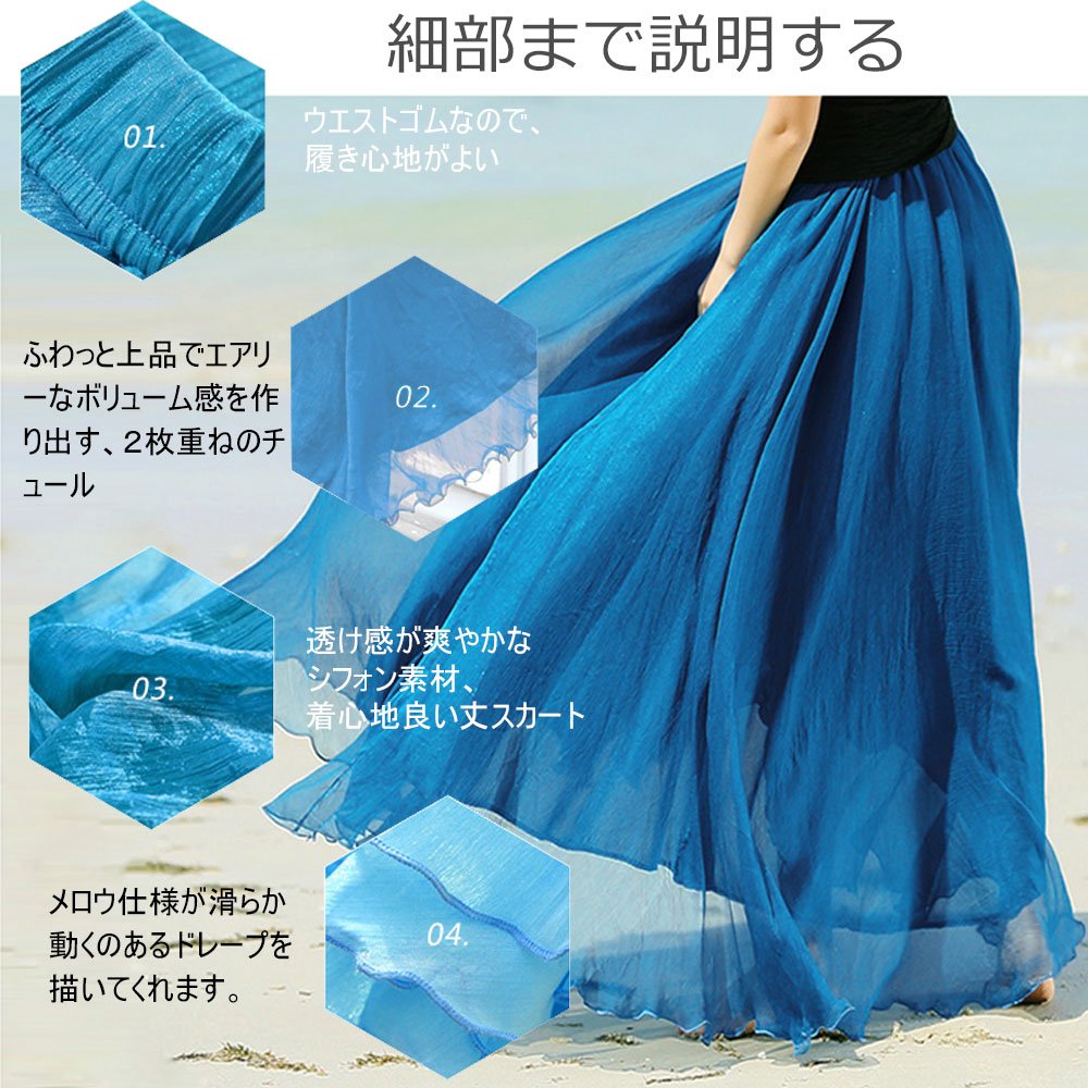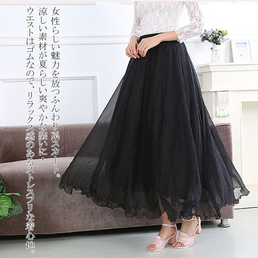 A sense of sheer refreshing chiffon material, comfortable length-length skirt!