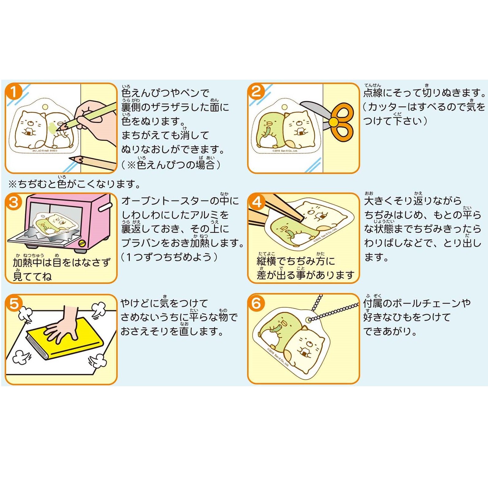 Items to prepare: color pencils, oil-based pens, water-based pens, scissors, cutters, aluminum foils, disposable chopsticks, oven toasters, books, etc. that become flat