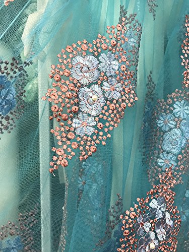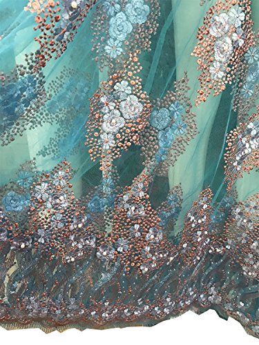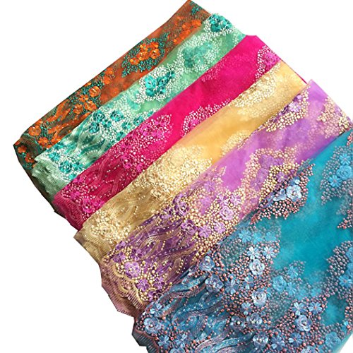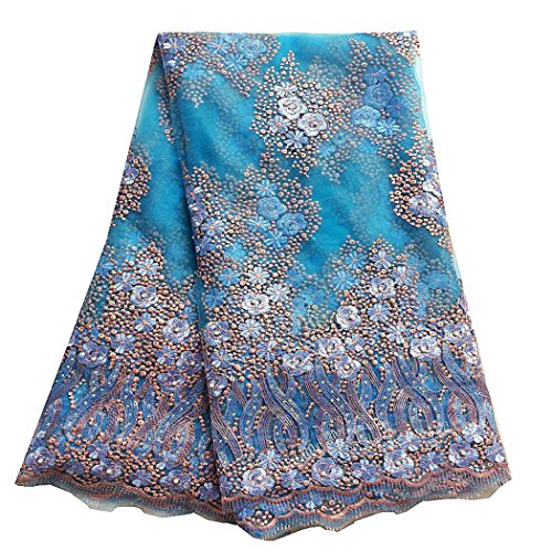 pqdaysun 5 Yards African Lace Fabrics Nigerian French Beaded Tulle Fabric (blue)