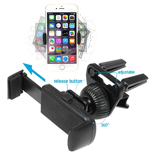 - Feature : Adjustable padded holder fits devices between 1.77 and 3.74-inch wide (45-95mm). / Holds your smartphone or portable device in either landscape or portrait mode. / Compatible with most car air vent louvers, with a strong spring-loaded arm and adjustable support legs for a secure grip / 360 degree swivel ball head joint allows a perfect customized view. Feature Quick release button / Package Includes: 1x iKross Car Air Vent Mount Holder, 1x iKross Multifunction FM Bluetooth Handsfree Stereo Transmitter