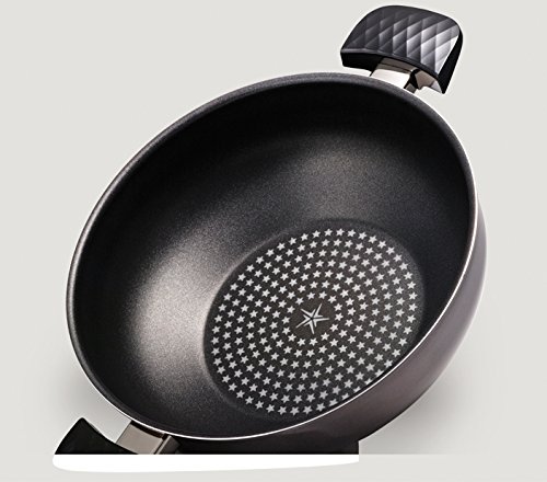 5-layer diamond non-stick coating is used to make the best non-stick cookware. Diamond also conducts heat 5 times better than copper. Made with forged aluminum so that heat is evenly distributed and coating lasts a longer time, the Diamond Party Wok is designed to be lightweight, strong, and durable. The exterior is also coated with porcelain, making cleaning a breeze.Feature