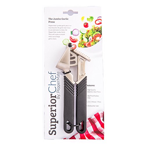 Superior Chef Stainless Steel Large Jumbo Garlic Press / Mincer by PepperMate Durable Kitchen Garlic and Ginger Press