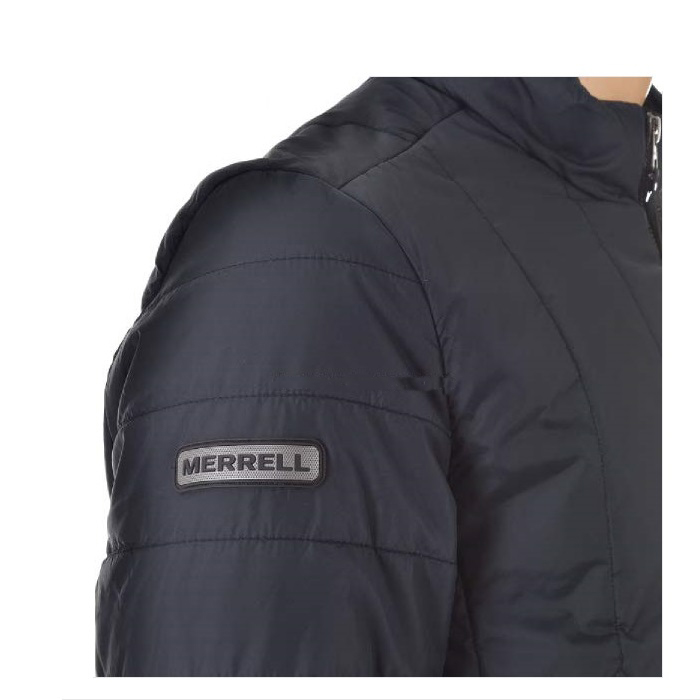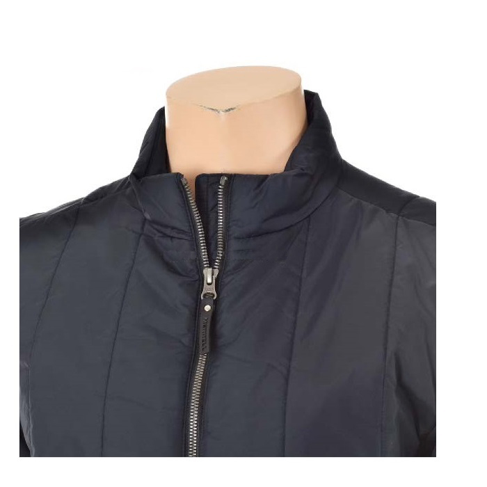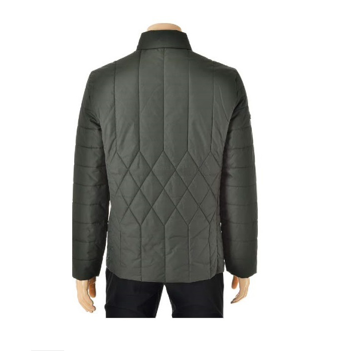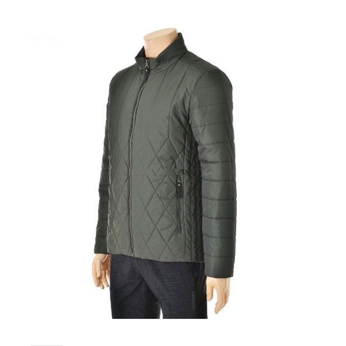 나일론 소재의 겉감에 변형 퀼팅패턴 적용한 캐쥬얼 패딩 자켓.