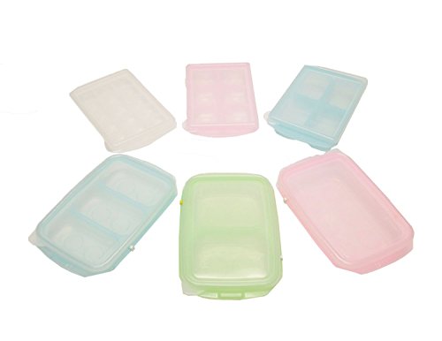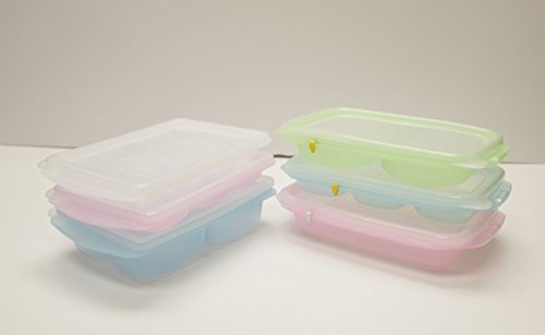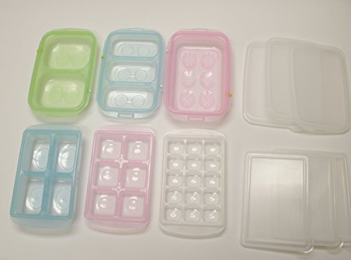 HSI Easily Pop Out 1, 2, 3, 4, 6, 15 Compartments Ice Cube, Baby Food sets, BPA-free PE Tray with Clear Lid in Multi Color, RRE Ice Cube Tray, Set of 6
