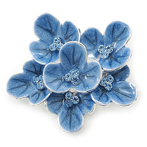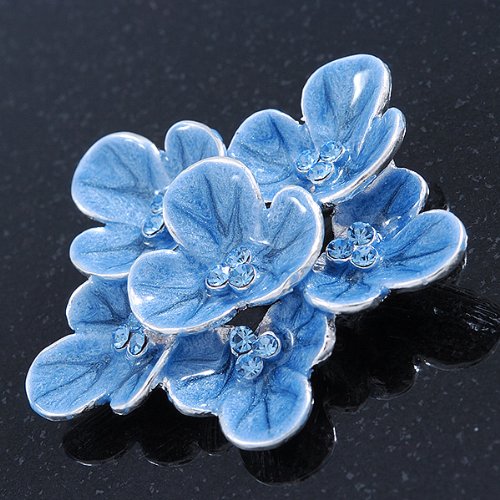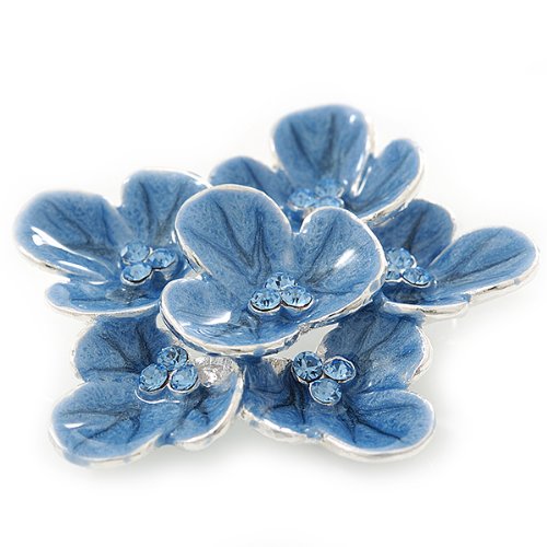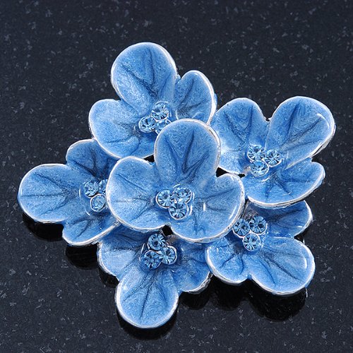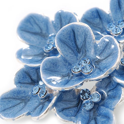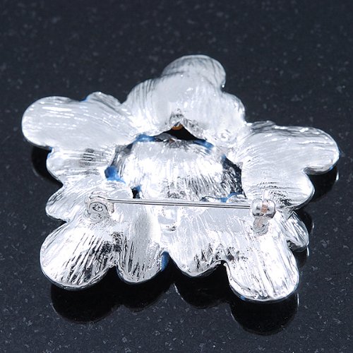 -. Title : Light Blue Enamel Flower Brooch In Rhodium Plating - 60mm Width