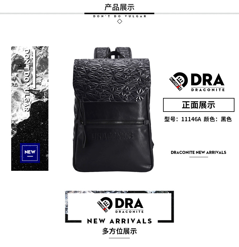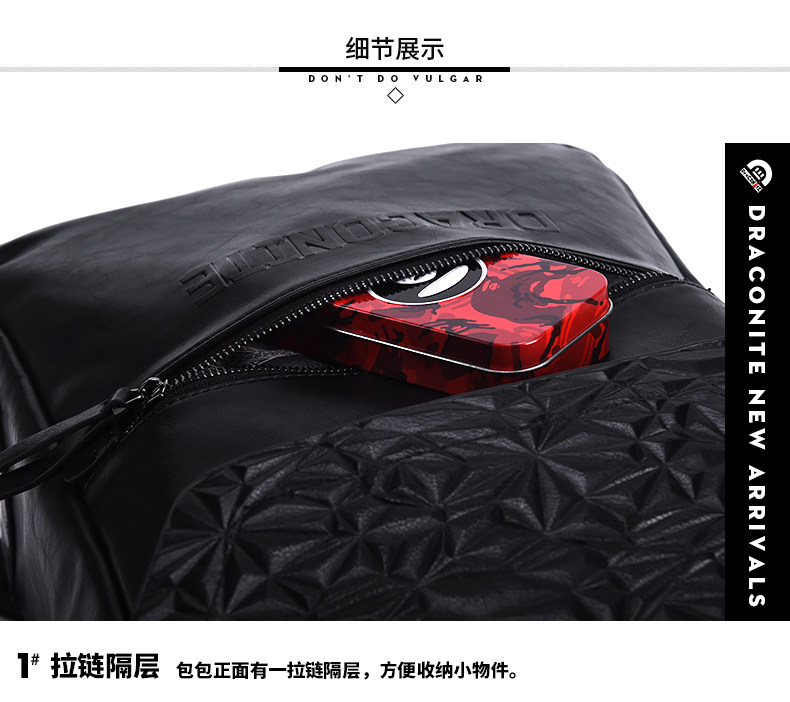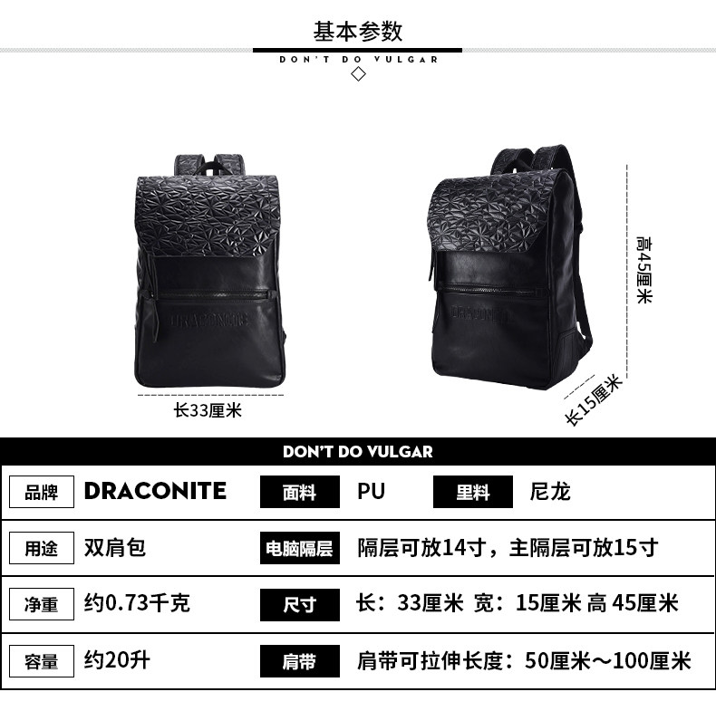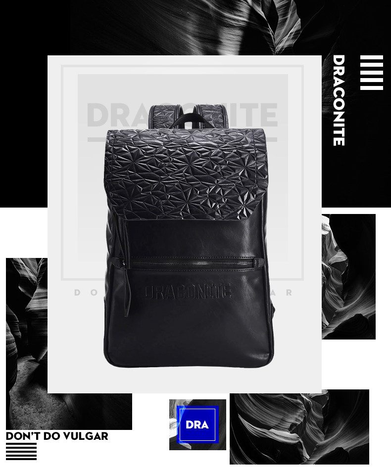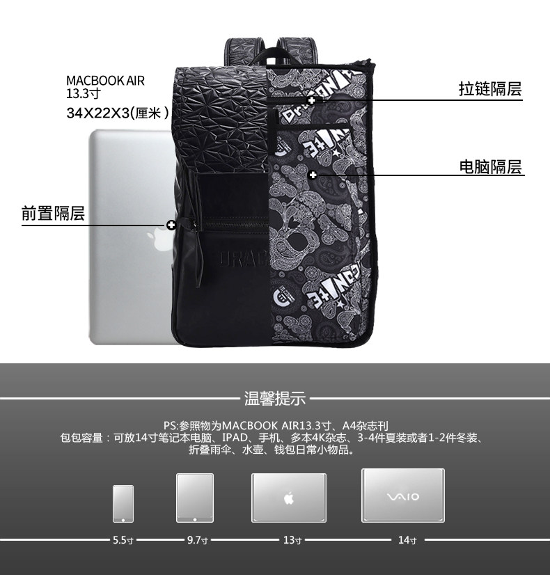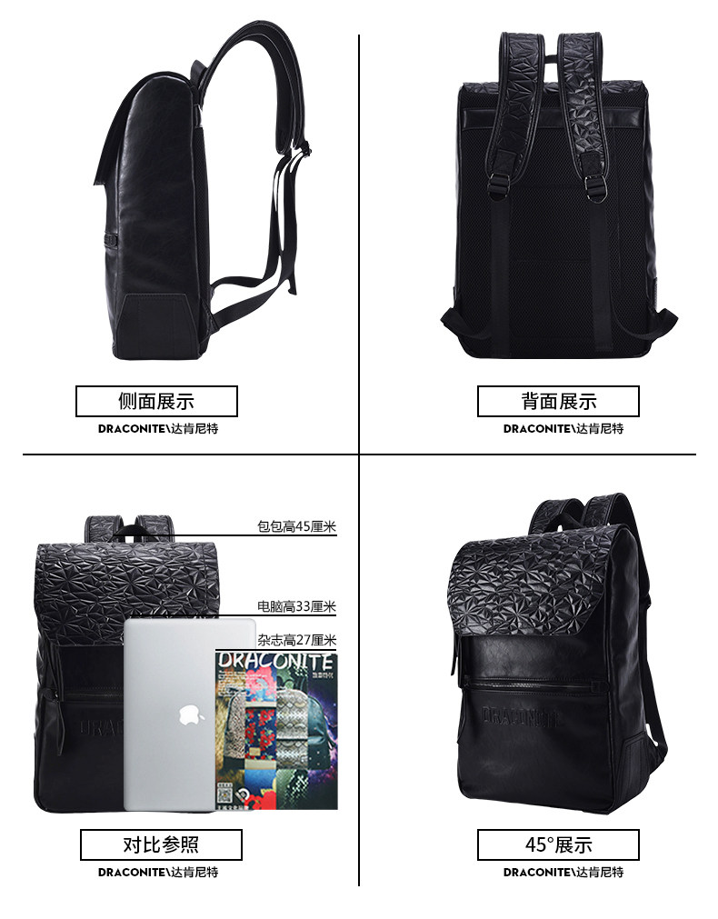 黑色菱格男士潮牌复古双肩包防水休闲时尚背包男11146A