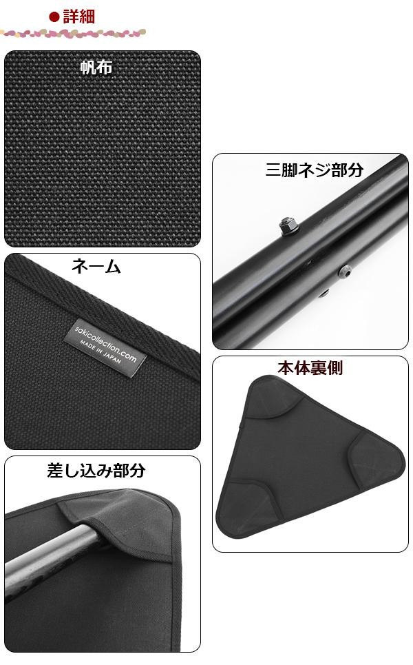 | 素材・材質 | 本体:8号帆布(綿100%) 三脚:直径30mm天然木(表面黒塗装) |